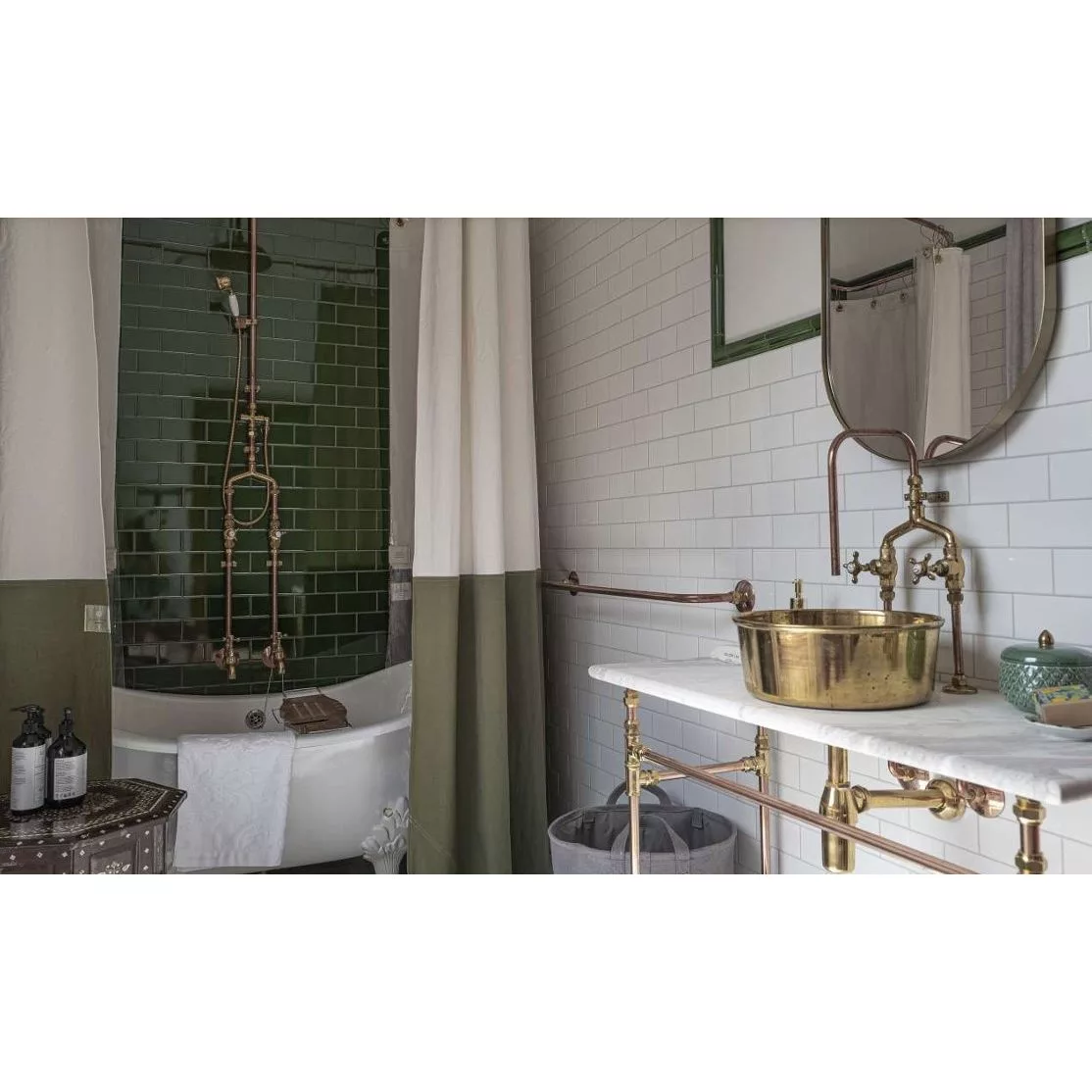 Stylish copper, brass, and chrome bathroom vanity units